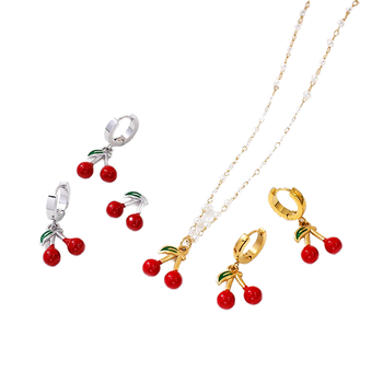 BOYI lüks paslanmaz çelik kiraz meyve kolye damla yağ küpe moda takı takım